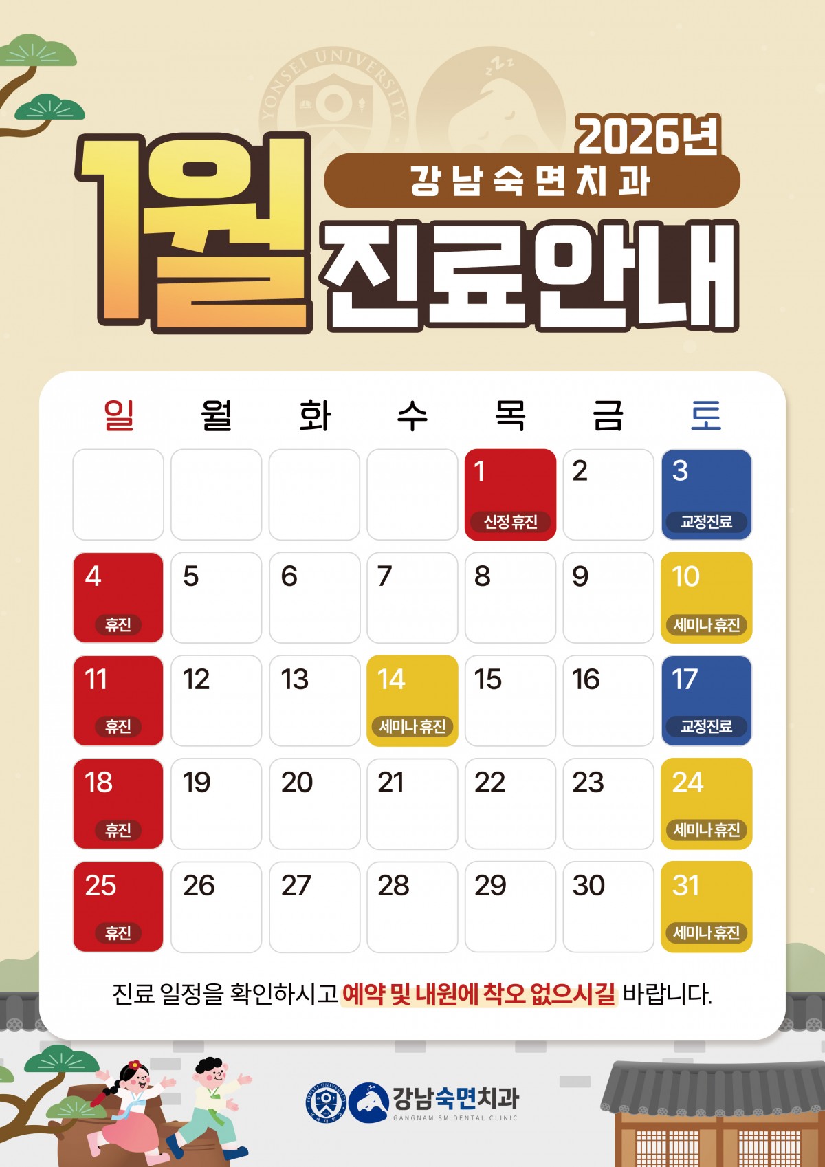 강남숙면치과 1월 진료일정 안내 > 공지사항