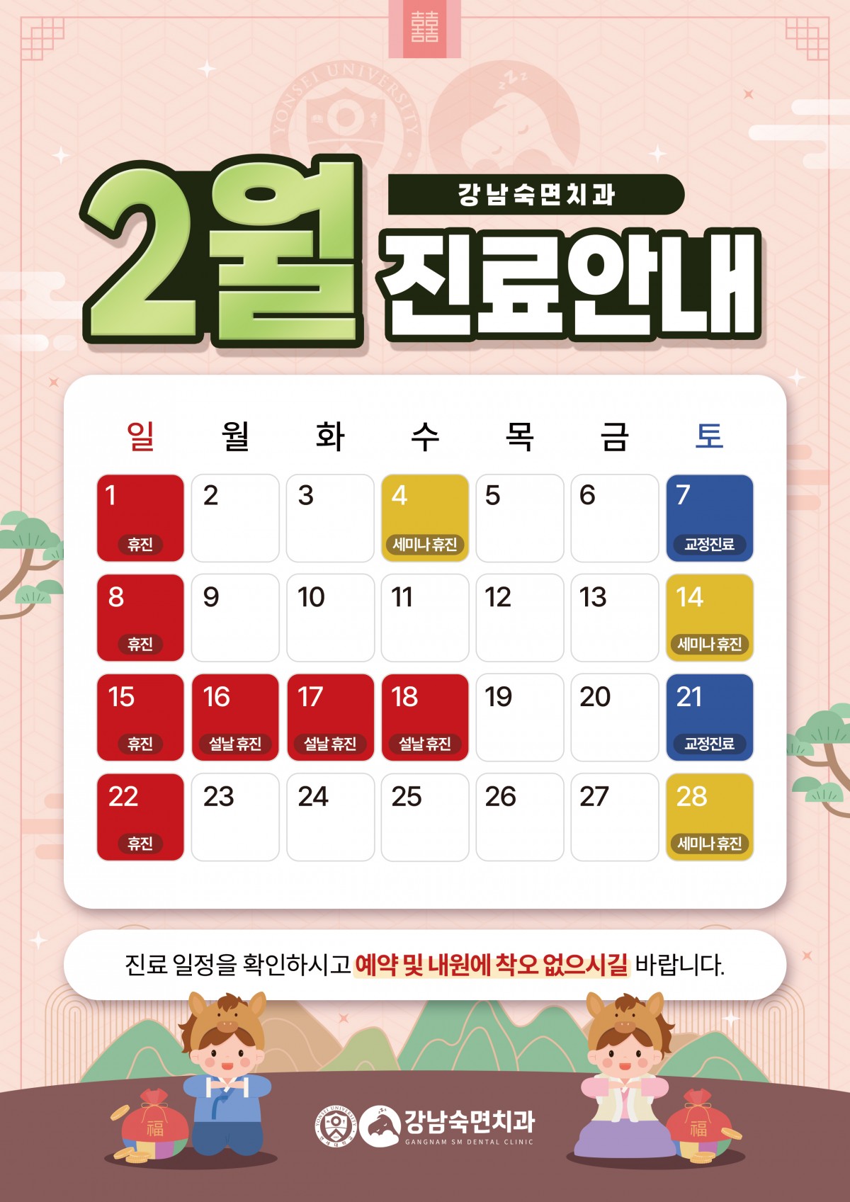 강남숙면치과 2월 진료일정 안내드립니다.